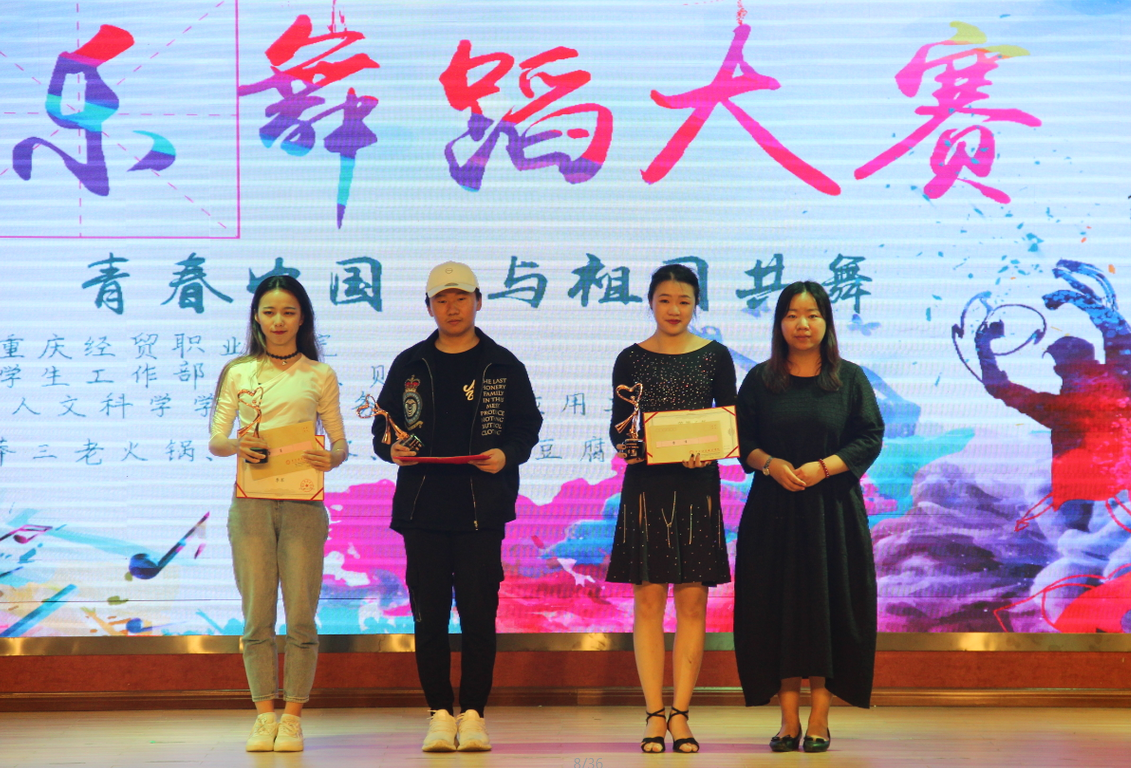 经过激烈的角逐,商务学院选送的《Fake Love》荣获一等奖;舞蹈社选送的《Partition》、商务学院选送的《失恋阵线联盟》荣获二等奖,财经学院选送的《Funk Style》、《Concept Trailer》、应用工程学院选送的《古韵》荣获三等奖。