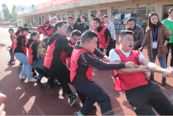 此次运动会共设有“快乐毛毛虫”、“猪八戒背媳妇”、“旱地龙舟”、“拔河”、“袋鼠跳”、“50米迎面接力赛”六个项目。每一个比赛项目都充满了趣味性、挑战性,这不单是智力与体力的角逐,更是团结与协作的比拼。
