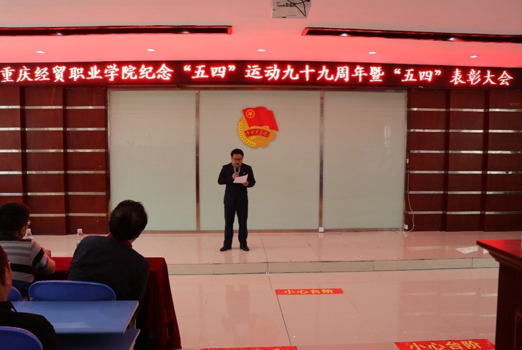 院团委讯。为纪念“五四”运动99周年以及表彰先进,树立典型。我院纪念“五四”运动99周年暨“五四”表彰大会在一教113教室隆重举行。学院副院长谈建设、学生工作部副部长姚樊樊、院团委书记张立、各二级学院团总支书记以及300余名师生代表参加了大会。
