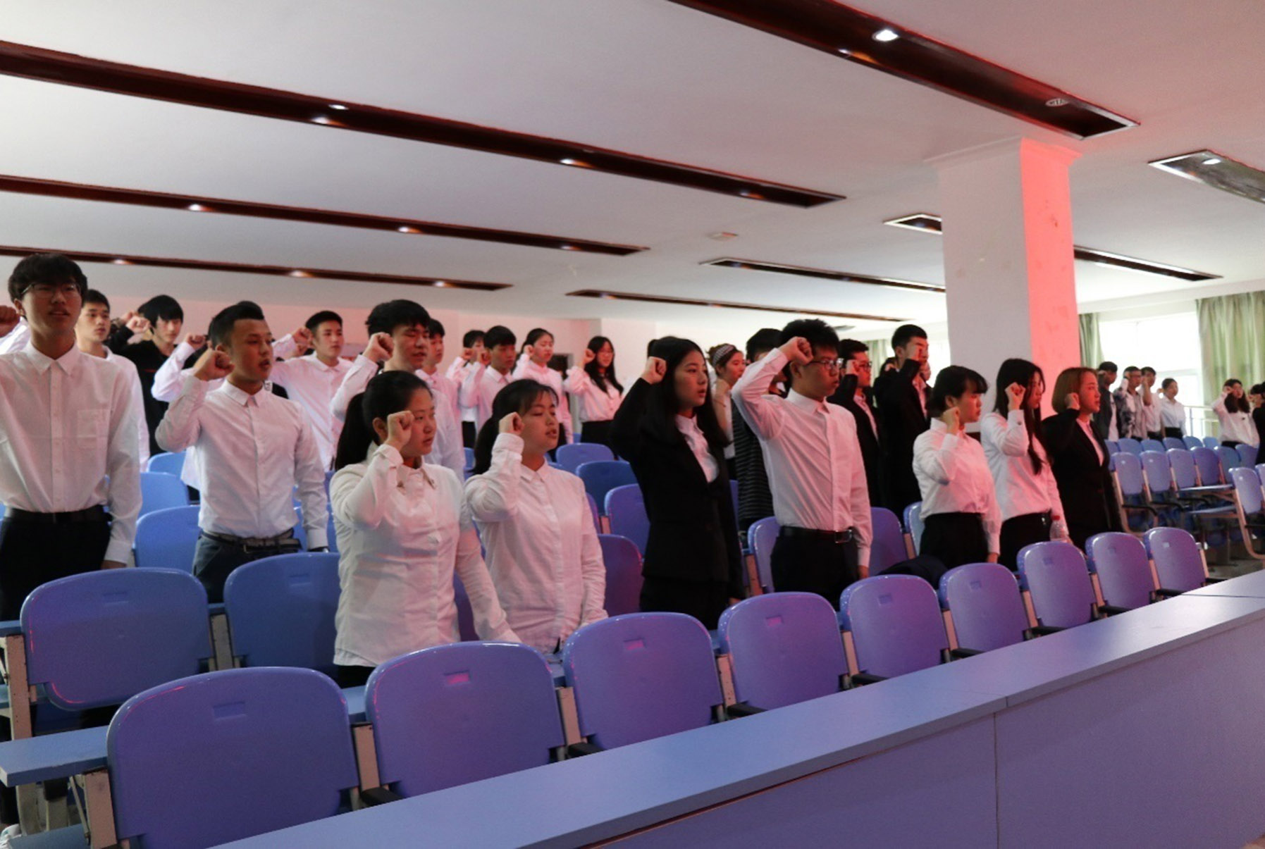 大会在雄壮的国歌声中拉开帷幕。会上,首先是新团员入团宣,在此环节全场师生共同接受了一次思想洗礼。
