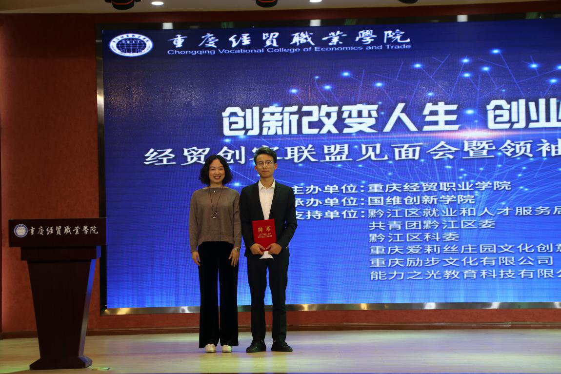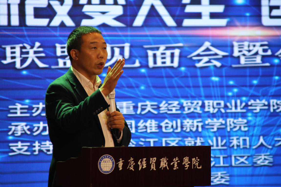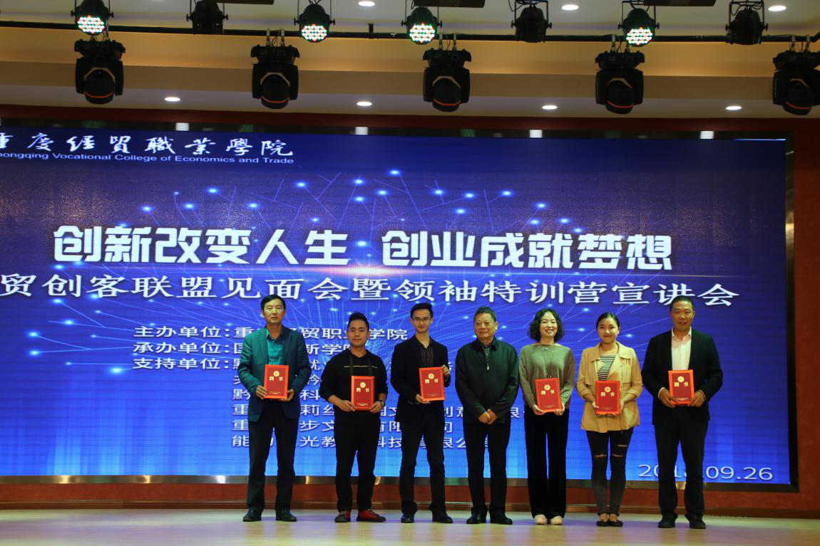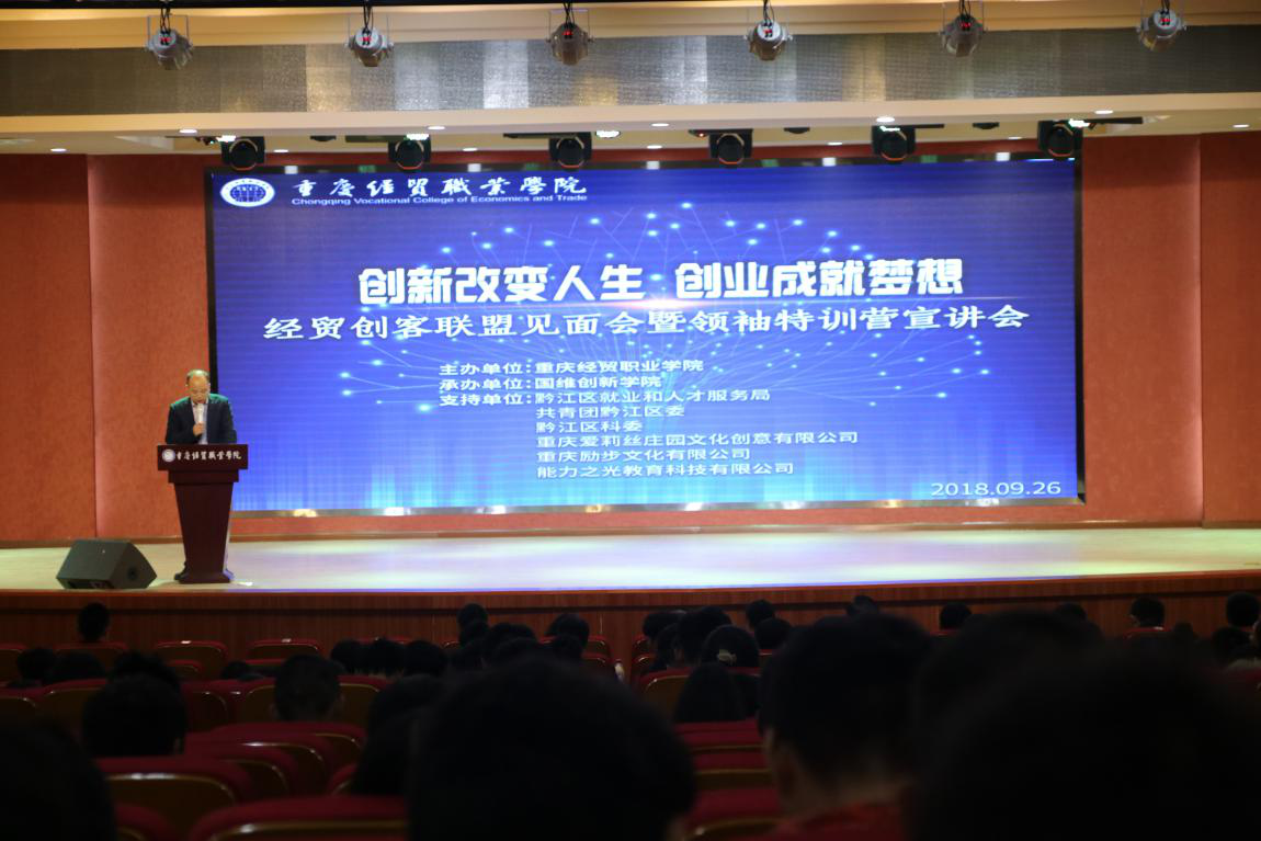 9月26日,我院创客联盟见面会暨领袖特训营宣讲会在学院多功能厅成功举行。黔江区就业和人才服务局副局长袁媛、黔江区团委书记助理刘晓双、黔江区科委科技创新中心主任徐恭刚、重庆爱莉丝庄园文化创意有限公司董事长杨再辉等领导出席。我院院长王久渊、院长助理杨诚、党政办公室主任邢亚伟以及各二级学院党支部书记等出席。本次活动的举办旨在深入学习、贯彻、落实中央、市、区关于创新创业工作的精神,鼓励和引导广大青年学生积极投身创新创业,推动学院创新创业工作不断迈上新台阶。