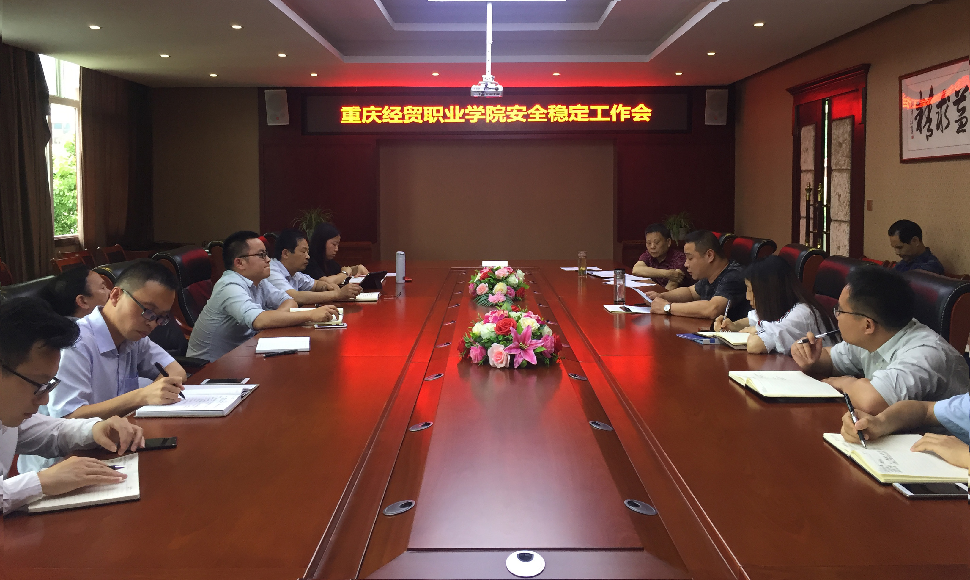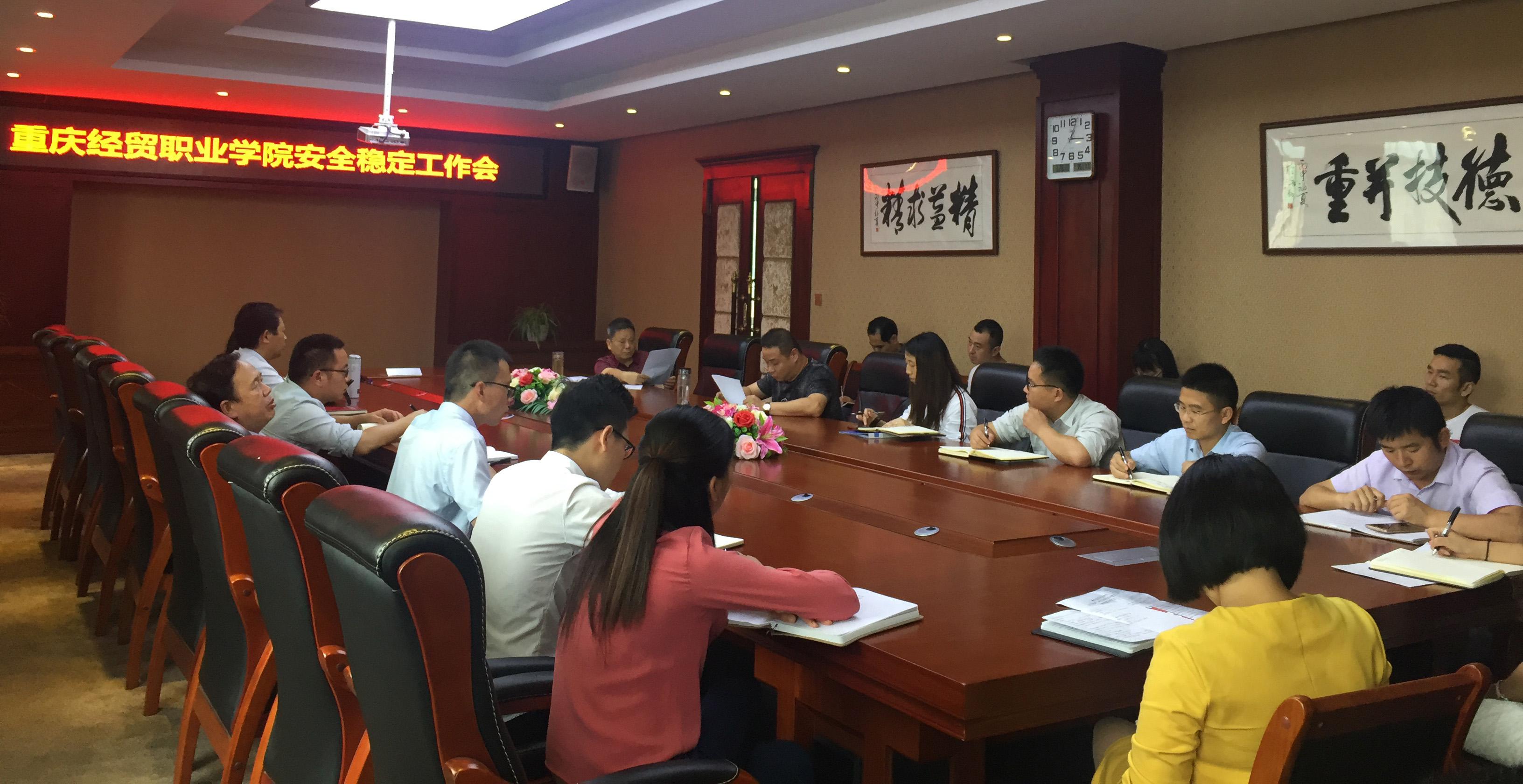 会议首先传达了市教委主持召开的安全稳定工作会。会上,后勤保障部部长针对市教委有关要求,对学院安全稳定工作提出了几点意见。一是要清楚认识学院安全稳定工作的重要性,认真落实责任。二是要坚持内紧外松,时刻关注师生思想动态,做好舆情和突发事件的处理。三是党政办要做好意识形态工作管理,发现反动言论立即制止。四是网络中心要加强网络安全管理,发现敏感词汇立即清理。五是教学工作部要强化课堂管理,严禁散播反动言论、传播宗教和邪教理论。六是学生工作部要加强对学生的日常行为、活动、宿舍以及重点少数民族学生的管理;对学生组织的较大活动要严格审查,并做好安全工作。七是学生工作部、人文科学学院要引导学生关注热点问题,不信教不传教。八是招生就业与对外合作部要做好来校参观的家长和学生,严防参见学生及家长与校内师生发生冲突。九是后勤保障部要加强校园及周边综合治安管理,加大巡逻力度,实行重点部位巡查签到制度,及时发现矛盾、化解矛盾。