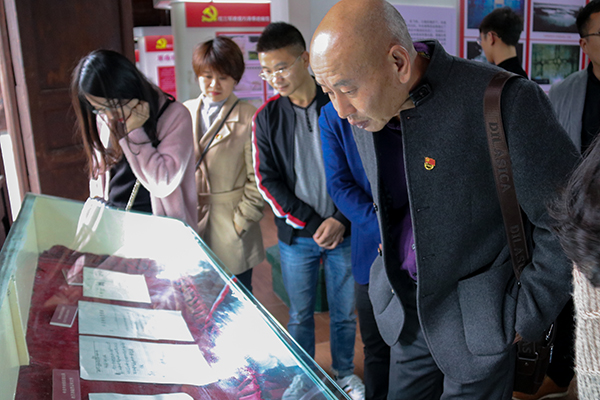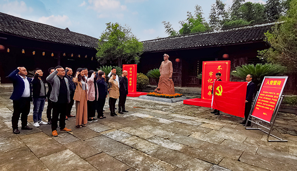 姚书记一行在故居工作人员的带领讲解下,参观了故居陈列室,回顾了万涛同志和战友们的革命经历,进一步让党员了解先烈们忠贞不渝的爱国主义精神和视死如归的浩然正气。最后,在万涛同志的塑像前,党员们还以集体宣誓的方式,在党旗下重温入党誓词,铭记入党宣誓时的庄严承诺和坚定决心。