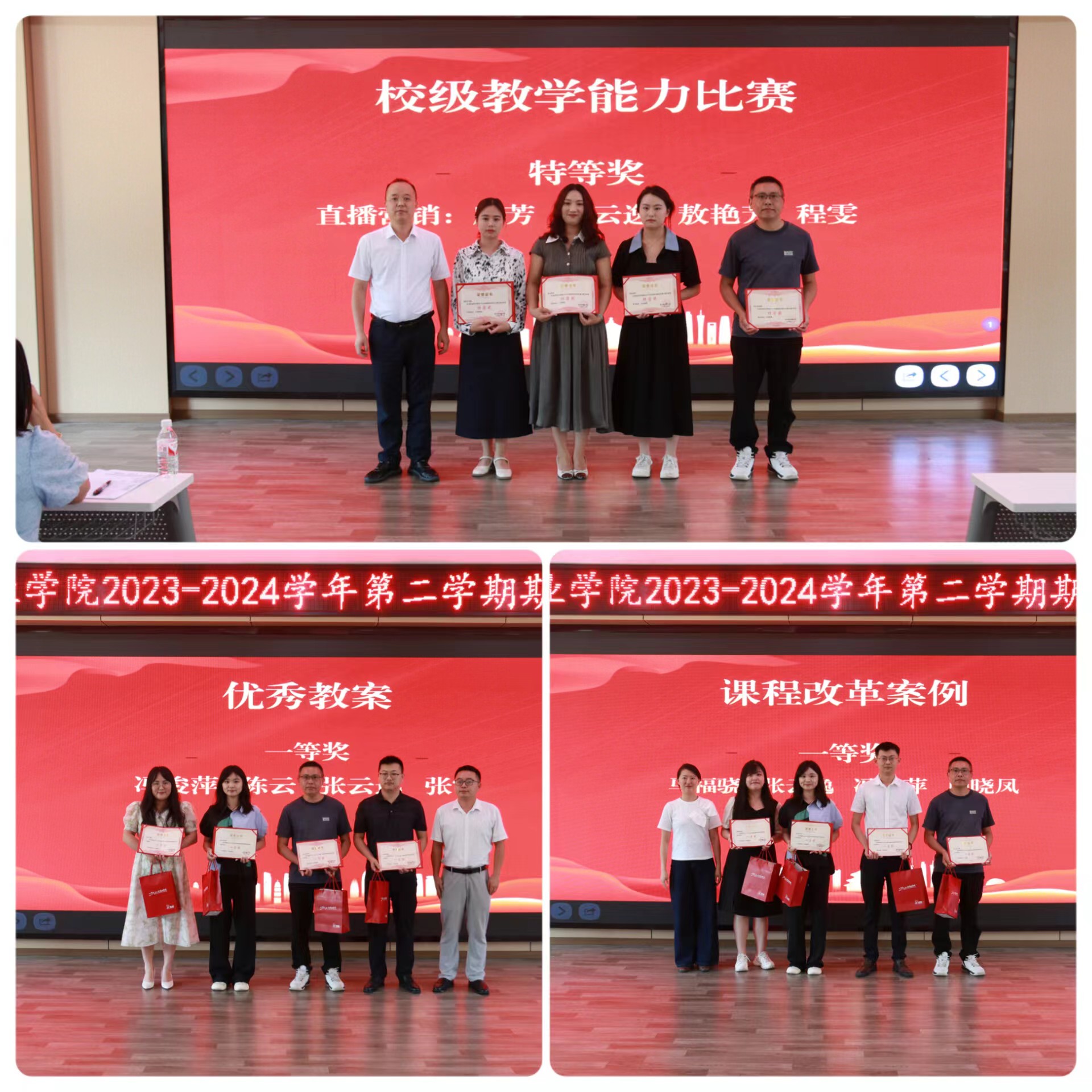 大会对本学期的优秀教案、课程改革典型案例、校级教学能力比赛、市级技能竞赛等竞赛活动获奖者进行了表彰。