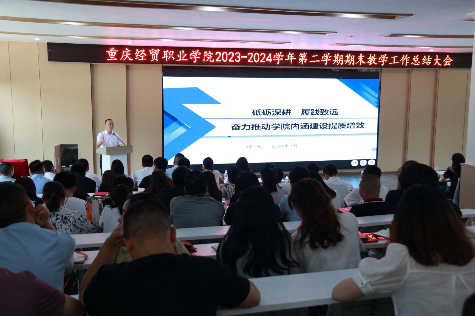 7月2日,我院2023-2024学年第二学期期末教学工作总结会在乐学厅召开。学院副院长杨诚,各二级学院负责人,教务处、科研处全体工作人员,全体教师参加此次大会。会议由教务处处长陈凯主持。