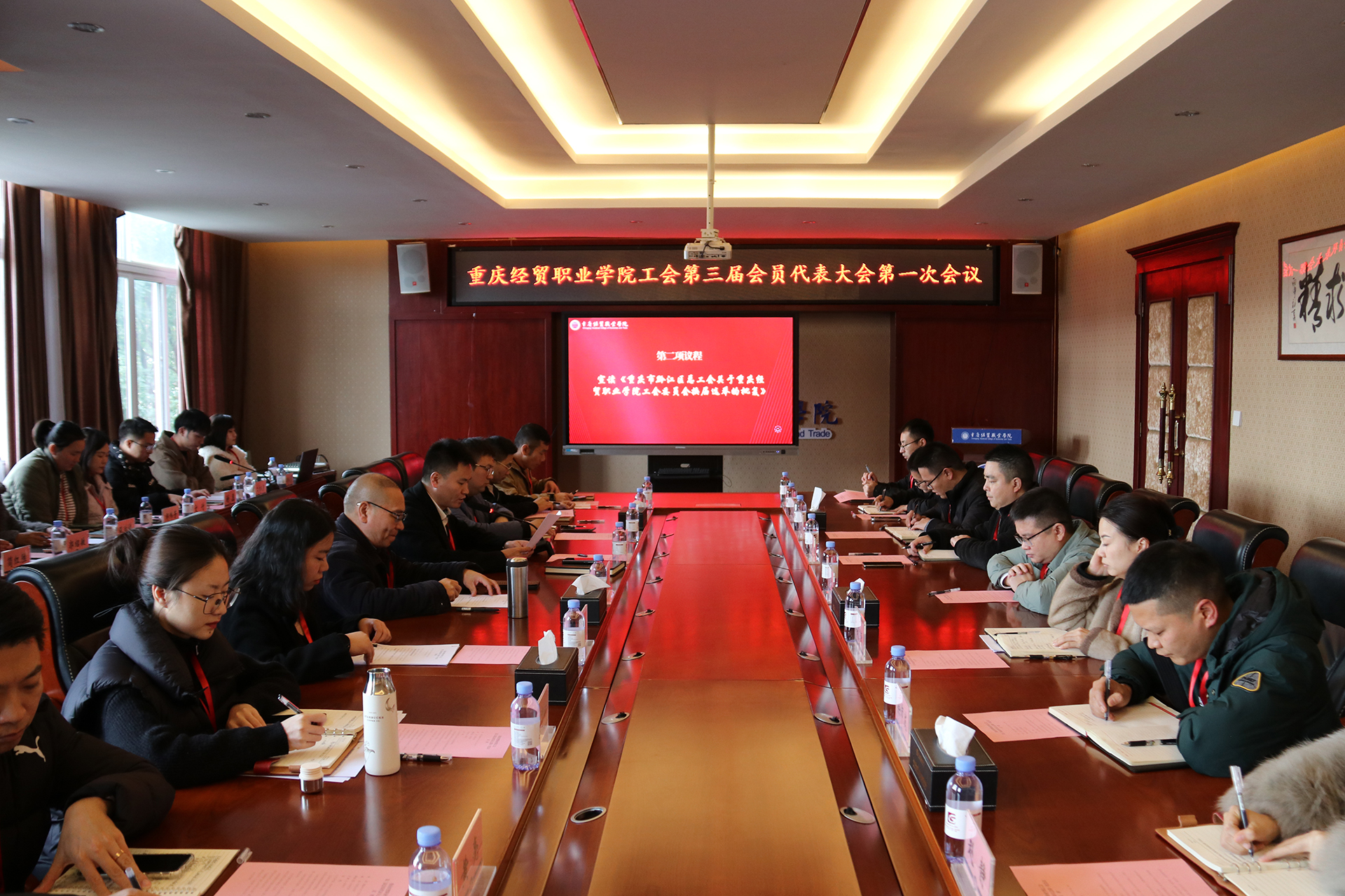 11月25日下午,我院工会第三届会员代表大会第一次会议在同德楼第一会议室召开,学院院长张耀天,院长助理姚樊樊、张倩,全体工会会员代表参加会议。
