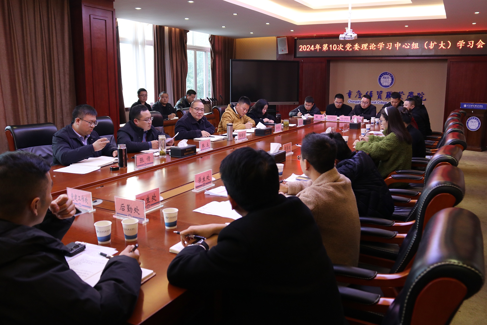 12月2日下午,院长张耀天在同德楼第一会议室主持召开了学院2024年第10次党委理论学习中心组(扩大)学习会,全体科级以上干部参加会议。