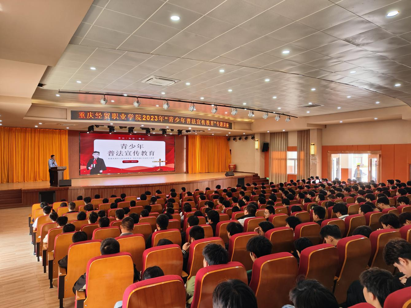 4月25日下午,学院邀请黔江区舟白派出所副所长孙章兴在博学厅举行“青少年普法宣传教育”专题讲座。