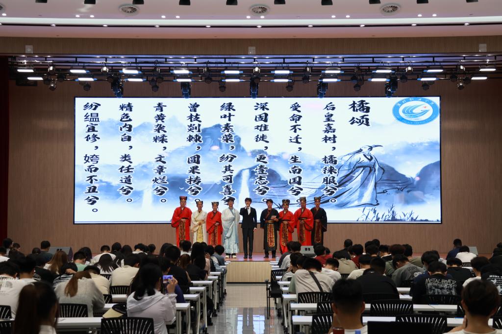 6月13日下午,学院在综合楼报告厅举办“情飞扬 志高昂 人灵秀”最美诗词诵读大赛。来自全校10个二级学院的15支参赛队伍及辅导员、学生代表400余人参加了活动。 活动现场,参赛学生借助音乐、服装、吟诵等手段融合展现诵读内容,场面宏大,气氛浓烈。一篇篇传世经典经过师生们的精心编排和精彩表演,或热情洋溢,或抑扬顿挫,或抒情婉约,或激昂壮阔,再现了中华诗词的无穷魅力。经过精彩较量,最终《毛泽东诗词选集》《橘颂》《琵琶行》...更多 -