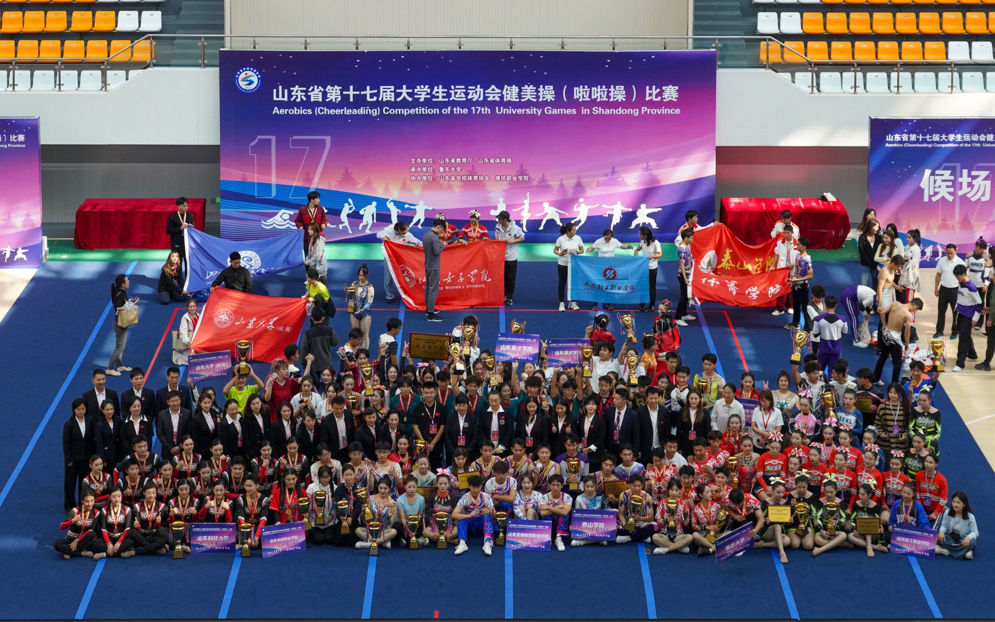 山东省第十七届大学生运动会健美操(啦啦操)比赛 在bb贝博滨海校区胜利闭幕