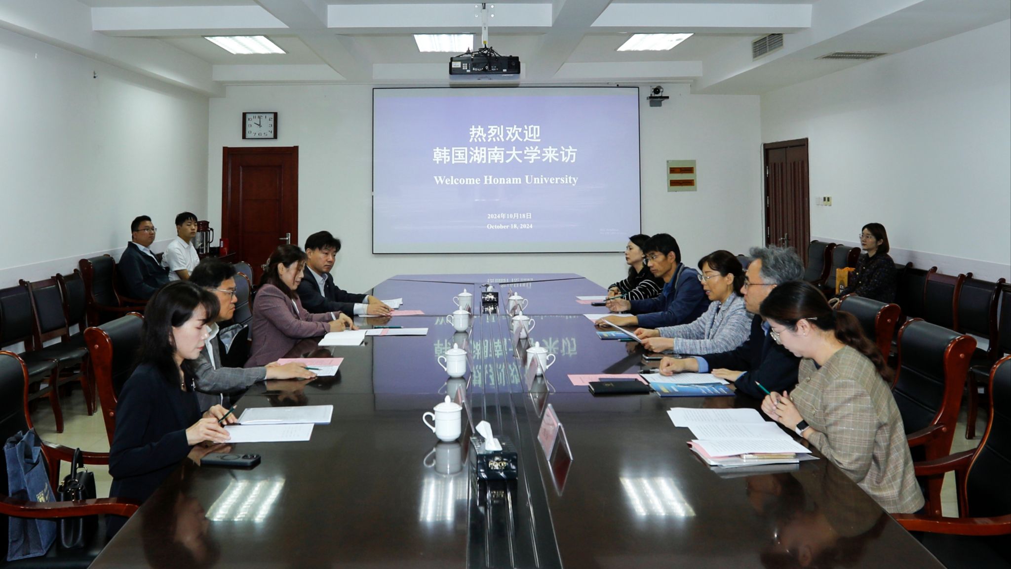 10月18日上午,韩国湖南大学财团董事会常务董事朴相建一行4人来bb贝博访问,学院副院长陈美霞在奎文校区会见了客人,国际交流与合作处、信息工程学院负责人及相关同志参加了座谈交流。陈美霞对客人的来访表示热烈欢迎,共同观看了学院宣传片,介绍了学院办学历史、发展现状及取得的主要成绩,就目前开展的国际交流项目做简要介绍,回顾了自2014年至今两校的深厚友谊,期待双方能在合作十年基础上,进一步深化交流与合作,共同推进教师交流互访、...更多 -