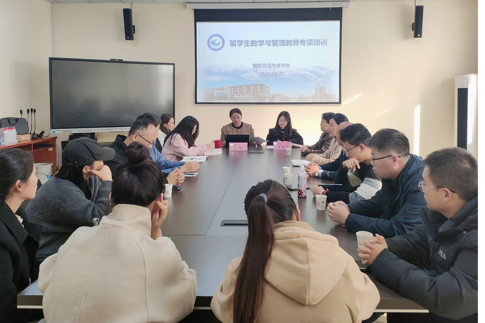 为增强学院留学生教学与管理教师的国际化意识,提升教学管理能力,11月21日下午,学院开展了留学生教学与管理教师专项培训,国际教育学院、机电工程学院、信息工程学院的留学生教师参加培训。本次培训以“尊重差异,包容多元—例谈来华留学生教学管理中的跨文化交际”为主题,由国际交流与合作处马雁和金越娇担任主讲。培训中,两位教师首先介绍了学院来华留学生教育的基本情况,提出了来华留学生教学管理存在的问题,阐释了跨文化交际的内涵及提高教师跨文化交际能力的方式。...更多 -