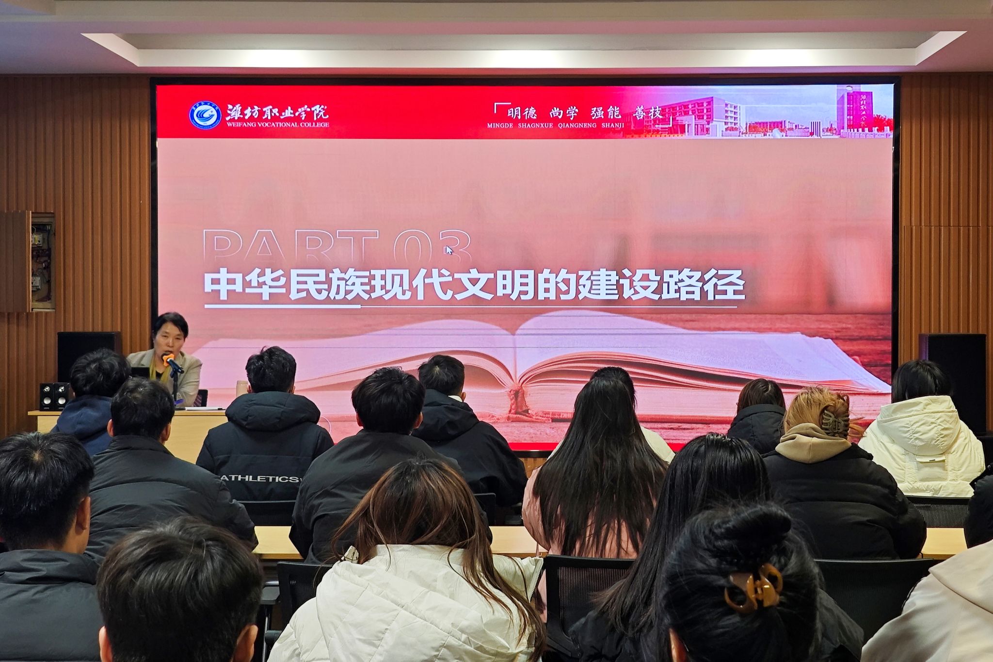 为深入学习贯彻党的二十大和二十届三中全会精神,推动习近平总书记对学校思政课建设指示的全面落实,帮助同学们进一步坚定和增强文化自信。11月26日下午,学院党委委员、宣传部(精神文明建设办公室)部长(主任)鞠桂芹深入文化创意学院为同学们带来了《深刻认识中华民族现代文明》专题思政课,文化创意学院30名学生参加。本次思政课从中华民族现代文明的鲜明特质、中华民族现代文明的发展动力、中华民族现代文明的建设路径三个方面展开深刻剖析,...更多 -
