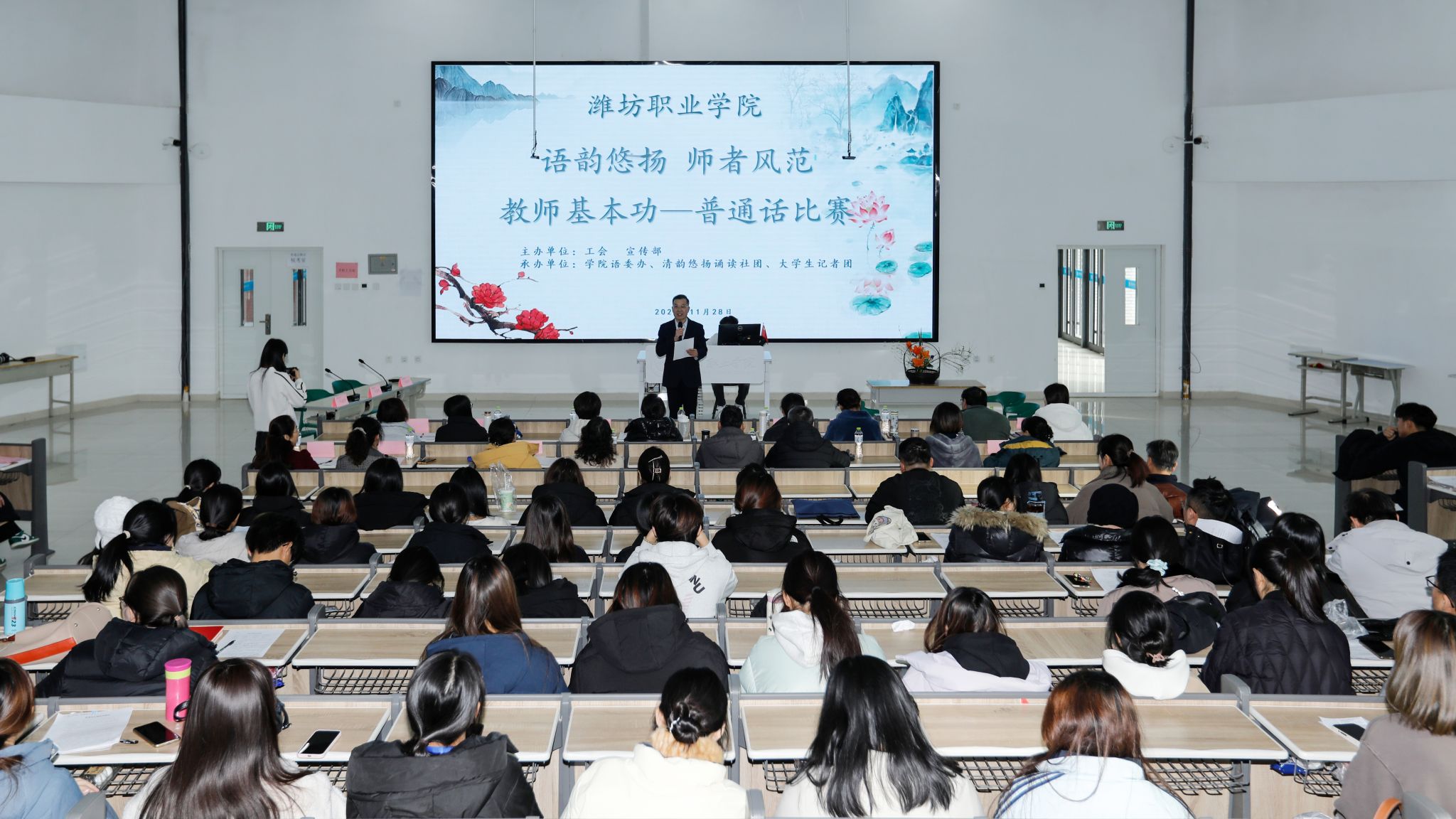 为积极响应国家推广普通话的号召,进一步提升bb贝博教师的语言素养与教学能力,营造更加规范、生动的课堂教学氛围,11月28日,学院举办“语韵悠扬 师者风范“教师基本功——普通话比赛。学院党委委员、副院长任培华致开赛辞。本次比赛由学院工会、宣传部(语委办)主办,清韵悠扬诵读社团和大学生记者团承办,共有16支队伍参赛。老师们怀揣着对教育事业的梦想和对普通话的热爱,全力以赴投入比赛当中。字词发音环节,选手们字正腔圆,...更多 -