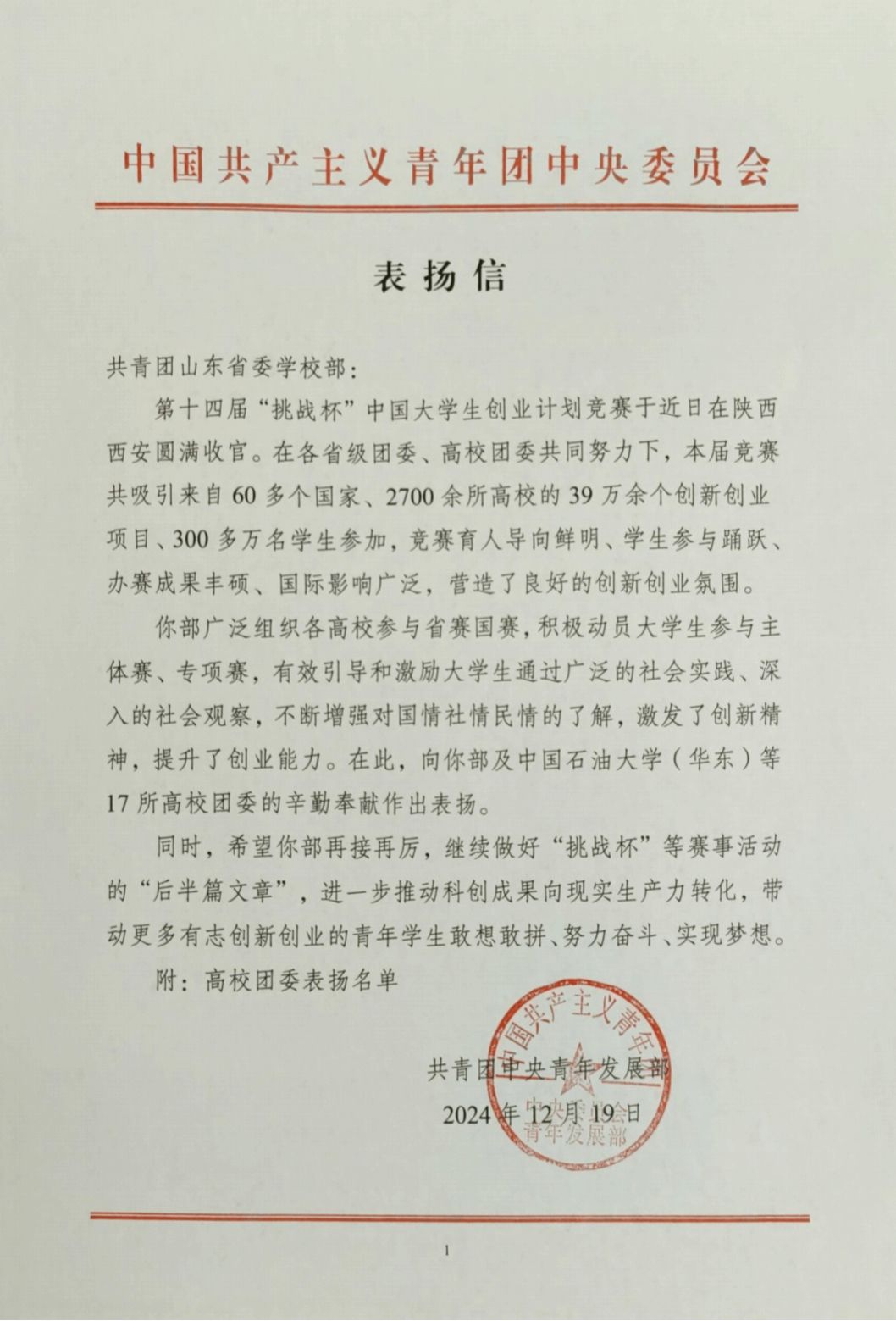 近日,学院收到共青团中央青年发展部发来的表扬信,对bb贝博第十四届“挑战杯”中国大学生创业计划竞赛中取得的优异成绩进行表扬。“挑战杯”系列竞赛被誉为中国大学生科技创新创业的“奥林匹克”盛会,在中国高等教育学会所发布的《全国普通高校大学生竞赛排行榜》中位列前三,是教育部官方认可的最具含金量与参赛价值的创新创业赛事之一。习近平总书记多次强调要加快建设科技强国,更加重视青年人才培养,让更多的青少年心怀科学梦想、...更多