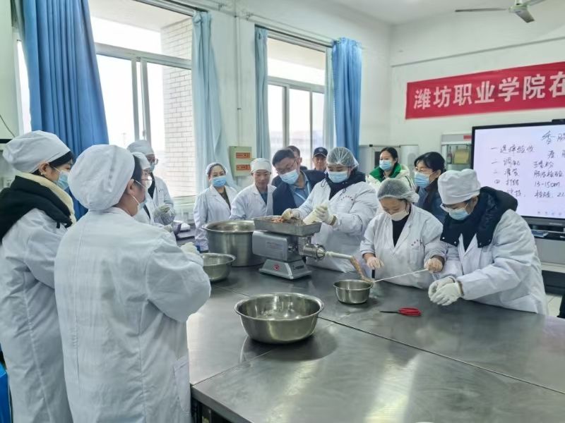 12月24日下午,学院党委副书记韩瑞东,副院长陈美霞,党委委员、办公室(统战部)主任(部长)刘志艳等一行深入食品药品学院实训中心,对香肠加工教学实训项目开展调研指导,食品药品学院党政负责同志及相关人员陪同。韩瑞东一行听取了食品药品学院关于香肠加工实训项目在岗位架构、产品创新、原料筛选、品质把控以及师生组织等方面的详细汇报,实地观摩了香肠加工从原料预处理、调配腌制到灌装排气的工艺流程,并对此次实训项目给予高度认可。...更多 -