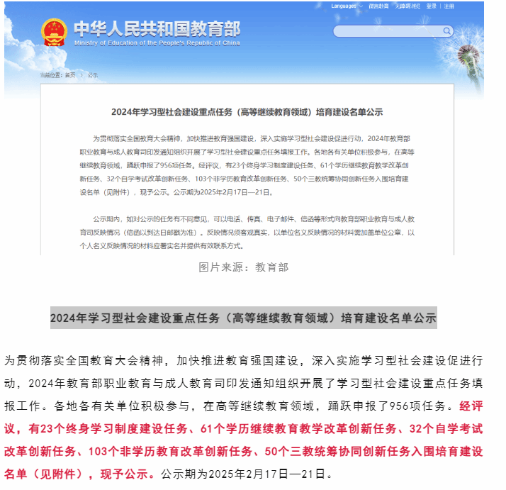 bb贝博成功立项教育部2024年学习型社会建设重点任务(高等继续教育领域)培育建设项目