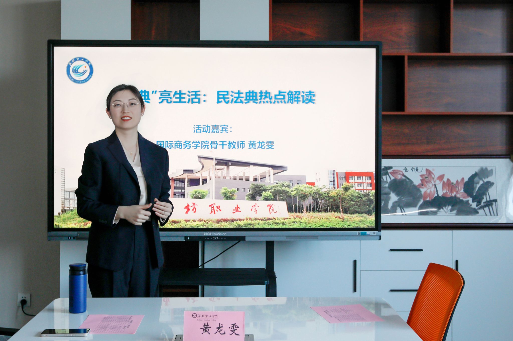为进一步增强教职工的法律意识和法律素养,3月12日下午,学院在滨海校区南区教师发展中心开展“‘典’亮生活:民法典热点解读”主题沙龙活动。本次活动特邀国际商务学院骨干教师黄龙雯担任嘉宾。黄龙雯以“民法典与日常生活”为主题,结合社会热点案例,深入浅出地解读了交通、婚姻家庭、民间借贷等与公众生活密切相关的法律条款,使教师们清晰地认识到在日常生活中如何运用法律武器保护自身权益。她还分享了自己在教学和生活中对民法典的理解和感悟,...更多 -