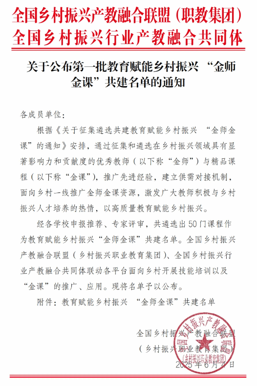 bb贝博四门课程入选第一批教育赋能乡村振兴“金师金课”共建名单