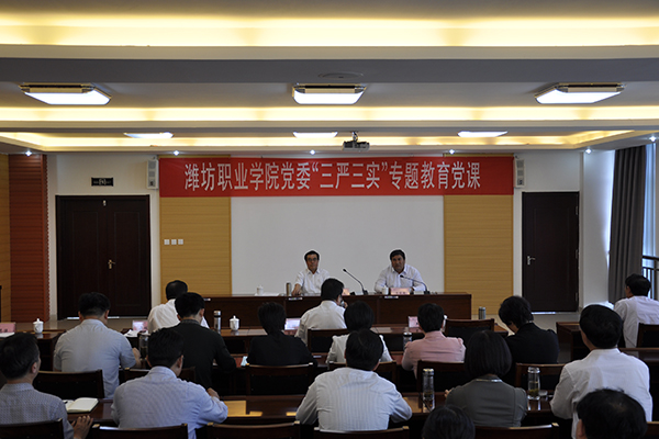 5月19日,学院党委在滨海校区清泽楼举办“三严三实”专题教育党课,正式启动全院县处级以上领导干部“三严三实”专题教育。专题党课由潍坊市政府党组成员、学院党委书记陈仁杰主讲。学院领导及各部门、各二级学院副处级领导干部聆听了党课。学院院长王家爱主持党课。陈仁杰主要从“三严三实”的丰富内涵和重大意义,“不严不实”具体表现和危害,以及如何贯彻“三严三实”,推动学院跨越发展三个方面进行了详细的解读和辅...更多 -