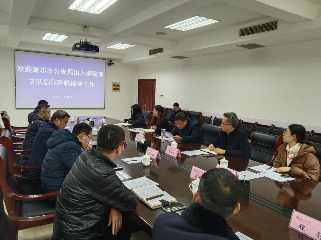 潍坊市公安局出入境管理支队到bb贝博调研国际学生管理工作