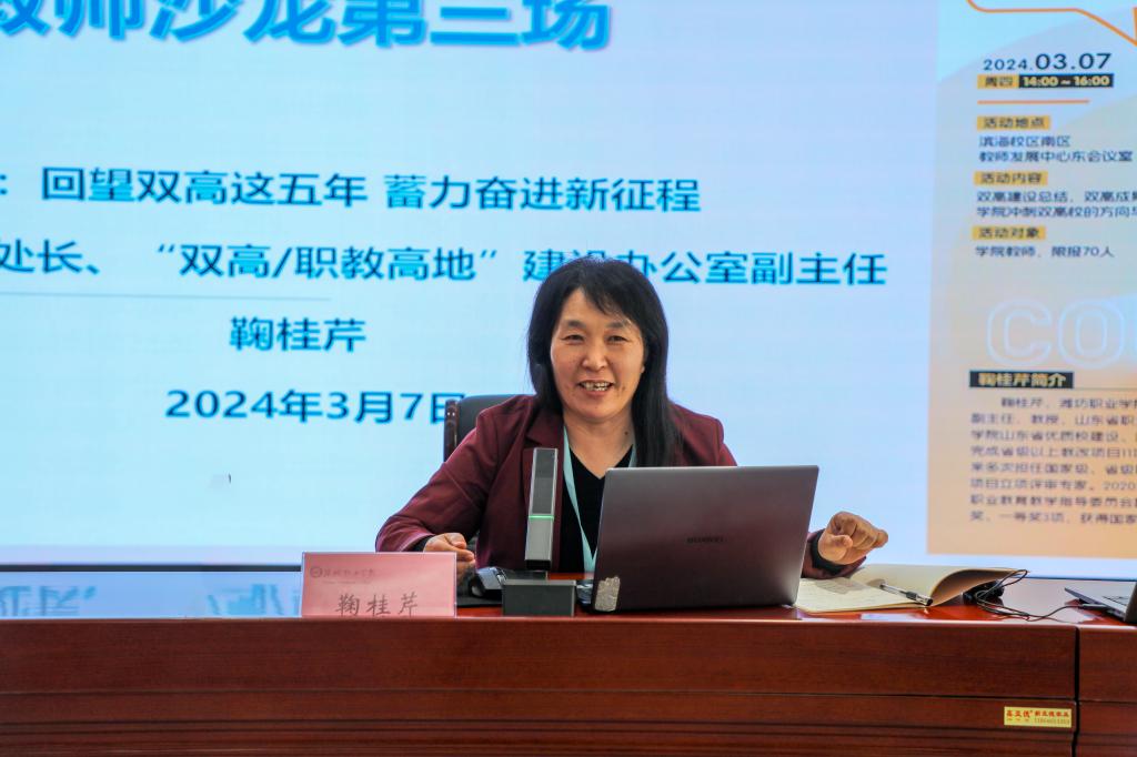 为引导广大教师深入思考国家“双高计划”的内涵与意义,提振学院高质量发展,3月7日下午,学院在滨海校区教师发展中心东会议室举行了第三场教师沙龙活动,各部门分管教学负责同志、骨干教师代表共80余人参加了本次活动。 “双高/职教高地”建设办公室鞠桂芹教授围绕“回望双高这五年 蓄力奋进新征程”主题,解读了“双高计划”的政策背景和深层含义,提供了全面学习双高政策文件、详细了解双高建设内涵的路径与方法。从学院办学实力、...更多 -