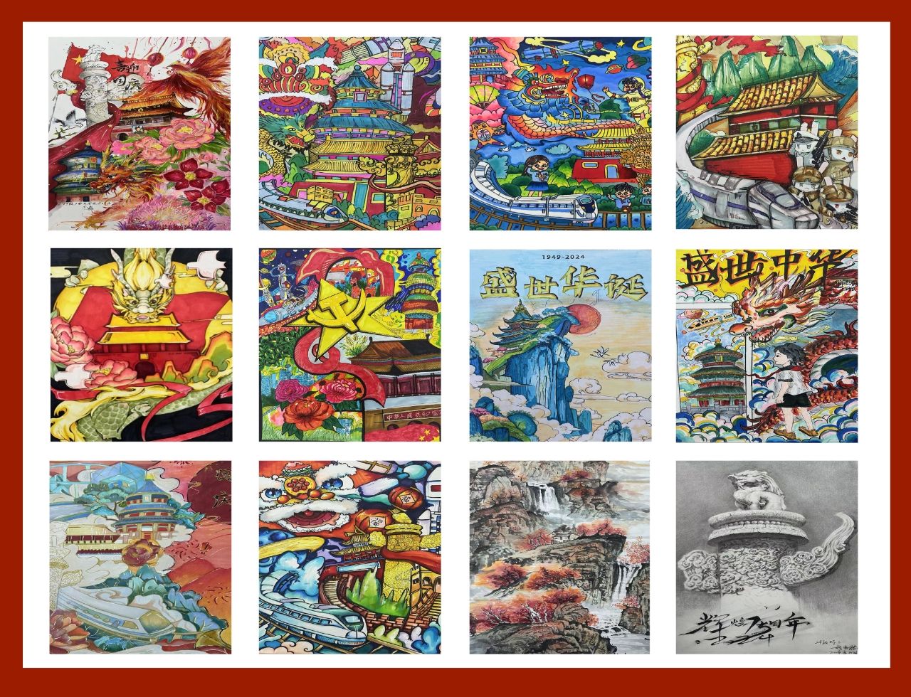 为庆祝伟大祖国75周年华诞,激发学生创作热情,用画笔展现对祖国的热爱与赞美,10月1日至10月11日,文化创意学院开展“国韵华诞,最伟大的艺术”主题绘画作品征集活动。活动一经推出,便得到了同学们的积极响应。大家纷纷拿起画笔,以饱满的热情投入到创作之中。他们以独特的视角、丰富的色彩和细腻的笔触,描绘出祖国的壮丽山河、悠久历史、灿烂文化以及新时代的伟大成就。征集作品类型丰富多样,涵盖国画、油画、素描、版画等门类,...更多 -
