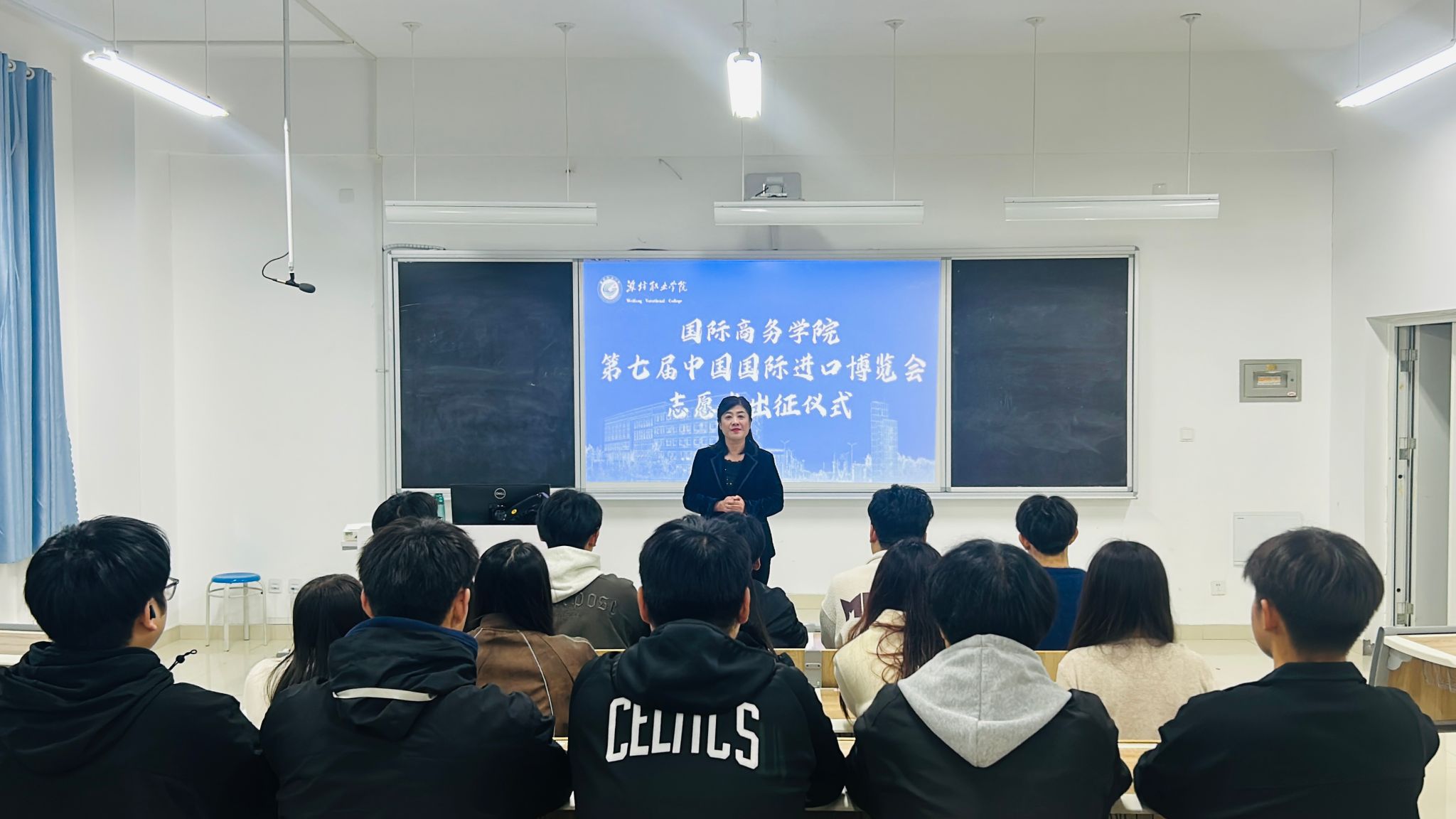 为助力中国式现代化发展,以实际行动践行奉献、友爱、互助、进步的志愿精神,10月20日晚,国际商务学院举行第七届中国国际进口博览会志愿服务活动出征仪式。bb贝博团总支负责同志主持仪式,75名志愿者参加活动。第七届中国国际进口博览会主题为“新时代 共享未来”,将于2024年11月5日—10日在国家会展中心(上海)举办。活动前期,国际商务学院对志愿服务活动进行了广泛宣传,并结合活动特点,重点面向商务英语专业学生进行了严格选拔。...更多 -