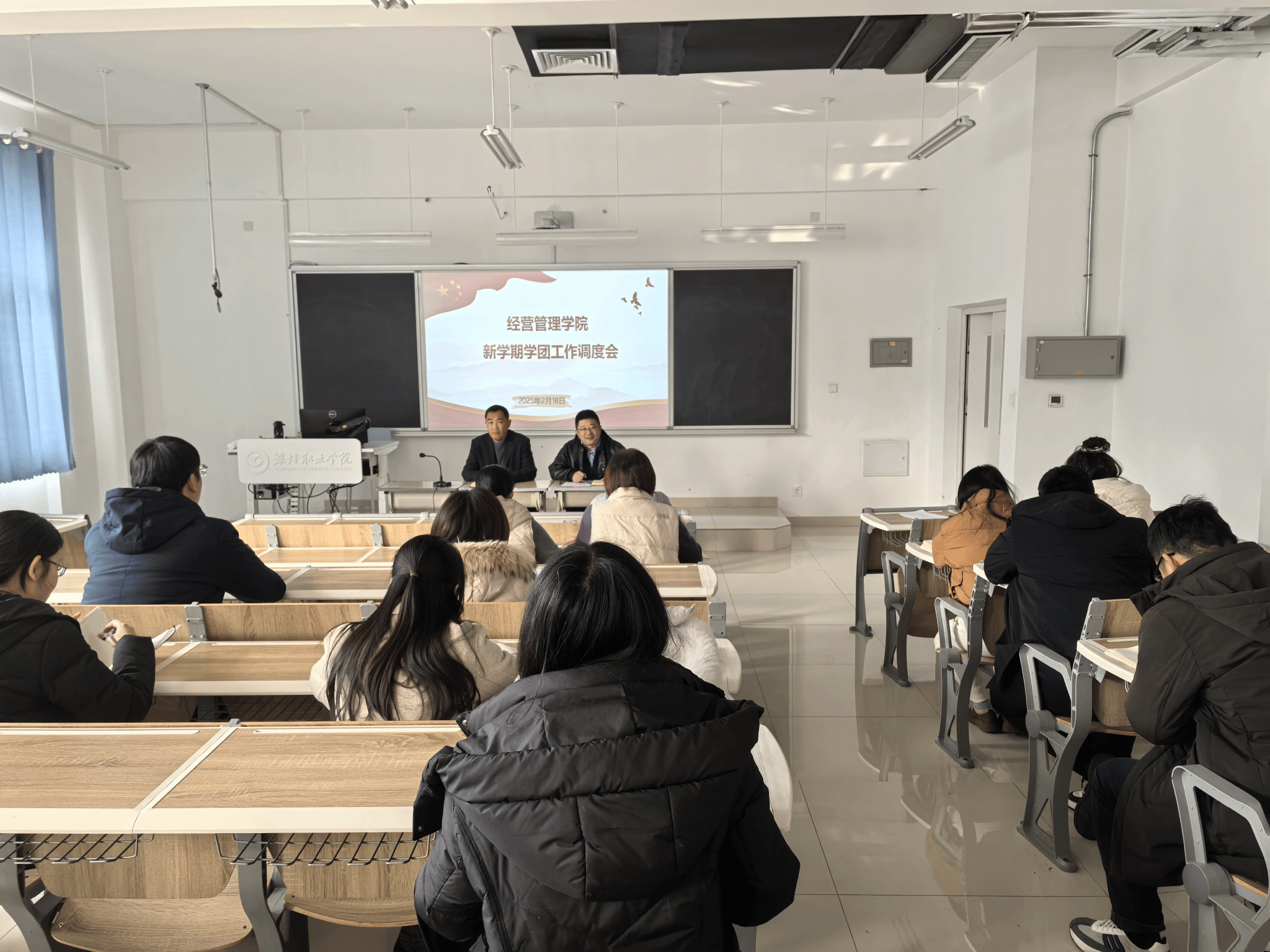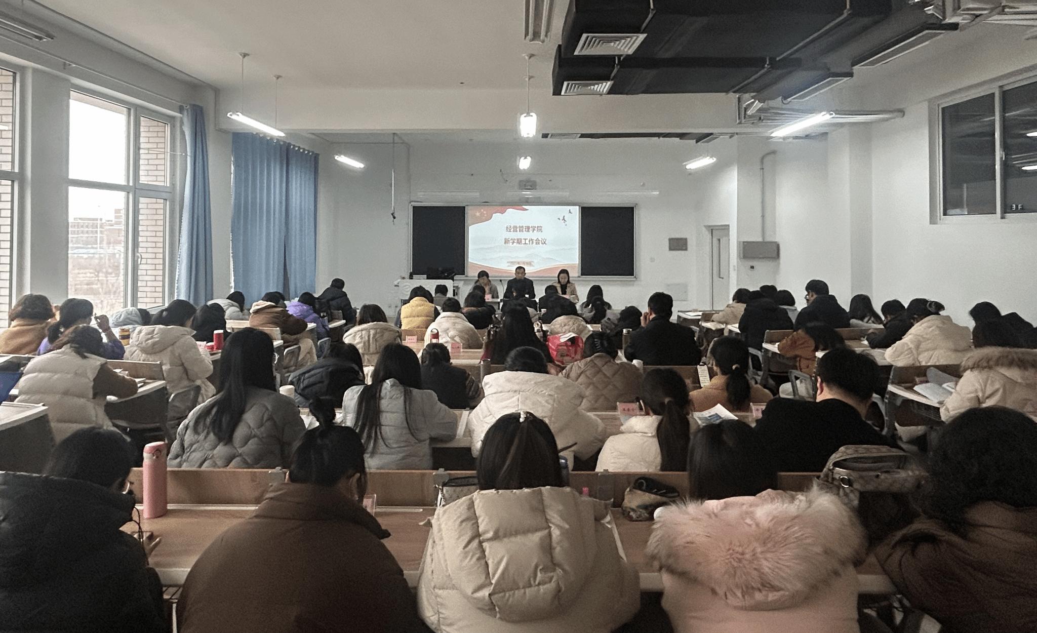 2月18日下午,经营管理学院在智泽楼B312召开新学期工作动员会,安排部署新学期工作,全体教职工参加会议。会议伊始,学院党总支主要负责同志对近期重要工作进行了梳理,包括开学安全排查、教学环境卫生、学生管理等。他强调,全体教职工要高度重视学生返校前的各项准备工作,确保开学工作平稳有序。随后,学院主要负责同志对寒假期间的各项工作进行了全面总结,并安排部署新学期的相关工作。她对寒假期间全体教职工在各项工作中的付出表示衷心感谢,...更多 -
