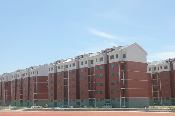 教师公寓共25栋楼,10.2万平方米,现正进行弱电、燃气配套和小区道路、管网施工。(郭玉亮 于涛供稿)