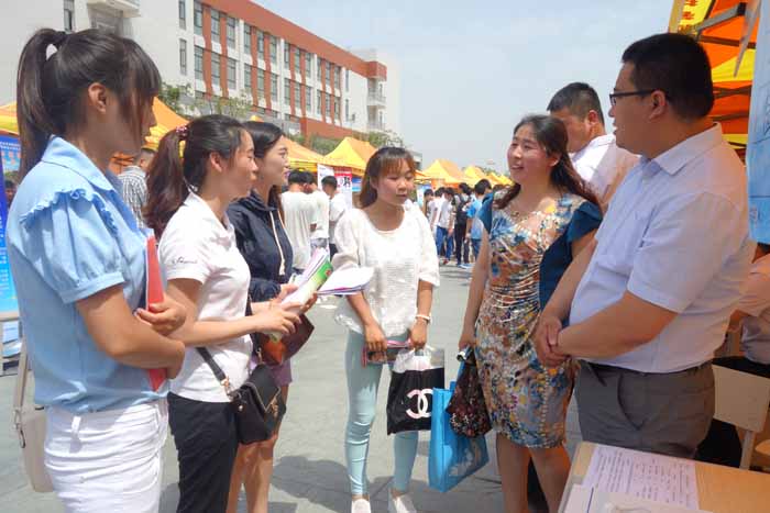 6月6日,2015年驻潍院校高校毕业生专场招聘会暨bb贝博艾弗森官方网站学生顶岗实习双选会在学院滨海校区隆重举行,学院党委副书记宋桂言,副院长贺志强,潍坊市人社局副调研员王瑞亮,潍坊市大中专毕业生就业指导中心主任王术平到招聘会现场检查指导,这是由潍坊市大中专毕业生就业指导中心主办、bb贝博承办、首次在滨海开发区举办的驻潍高校毕业生专场招聘会。