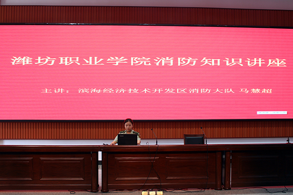 5月15日下午,学院邀请滨海区消防大队马慧超参谋在滨海校区清泽楼报告厅为近300名师生作消防知识讲座。