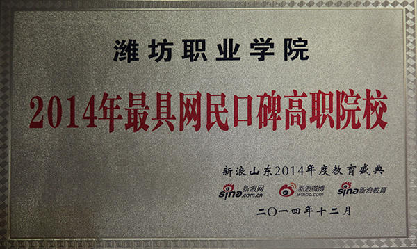 在新浪山东于2014年底举行的“新浪山东2014教育盛典”活动中,经过全民网上投票,bb贝博获评“2014年最具网民口碑高职院校”。