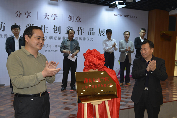5月10日,首届“分享•大学•创意”潍坊大学生文化创意作品展开幕式暨bb贝博艾弗森官方网站大学生创意创业孵化器揭牌仪式,在京广文化广场潍州大讲堂举行。学院副院长贺志强,中共奎文区委常委、宣传部长李强,潍坊银行开发管辖行行长稽海涛,奎文文化创意产业协会会长刘晓阳,奎文文化创意产业协会秘书长纪建华出席。师范/文化创意学院主要负责同志及部分师生、北京出版集团负责同志、高校创业研究专家、金融机构代表、风投机构代表和媒体记者百余人参加了活动。