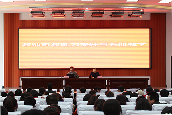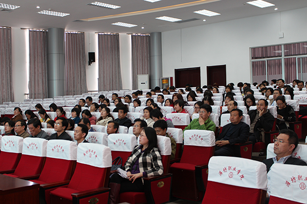 4月16日下午,bb贝博教学管理人员培训班首场专家报告会在滨海校区清泽楼报告厅举行。报告会由学院副院长贺志强主持。来自教务处、中专部和二级学院的近200人参加了报告会。