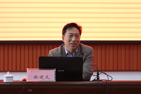 报告由山东畜牧兽医职业学院党委副书记徐建义教授主讲。徐建义教授是教育部动物生产类教学指导委员会成员、全国农业职业教育研究会专家组成员、山东畜牧兽医学会常务理事、山东省禽病学会会副主任委员、潍坊市禽流感防治专家组组长、山东省教学名师、三级教授,在全省乃至全国享有极高的声誉。徐教授在报告中,以“教师执教能力提升与有效教学”为主题,从职业教育课程开发背景与德国职业教育和课程开发的五要素,即课程设计、教学手段与方法、教学资源建设、教材建设和课程教学实验实训条件建设等方面,就教师如何提升执教能力、如何打造有效课堂进行了深入细致的阐释和讲解。