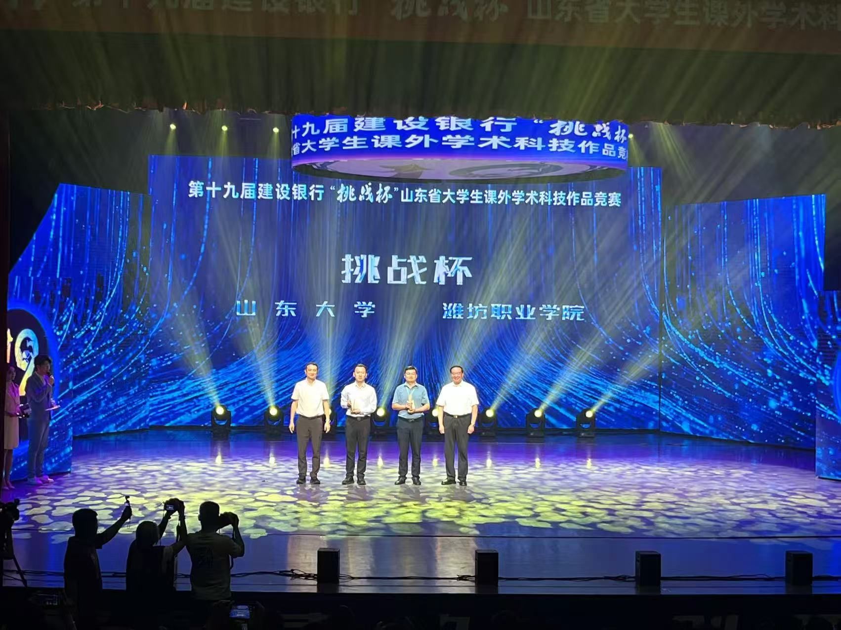 6月6日,由共青团山东省委、山东省科学技术协会、山东省教育厅、山东省科技厅、山东社会科学院、山东省学生联合会共同主办,临沂大学、山东科技职业学院承办的第十九届“挑战杯”山东省大学生课外学术科技作品竞赛在临沂大学落下帷幕。bb贝博获特等奖4项、一等奖7项、二等奖5项、三等奖4项,总分位列全省高职院校首位,学院荣获最高荣誉“挑战杯”。农林科技学院王慧香同学作为往届“挑战杯”国赛金奖选手代表,受邀参加闭幕式并分享“挑战杯”心路历程。