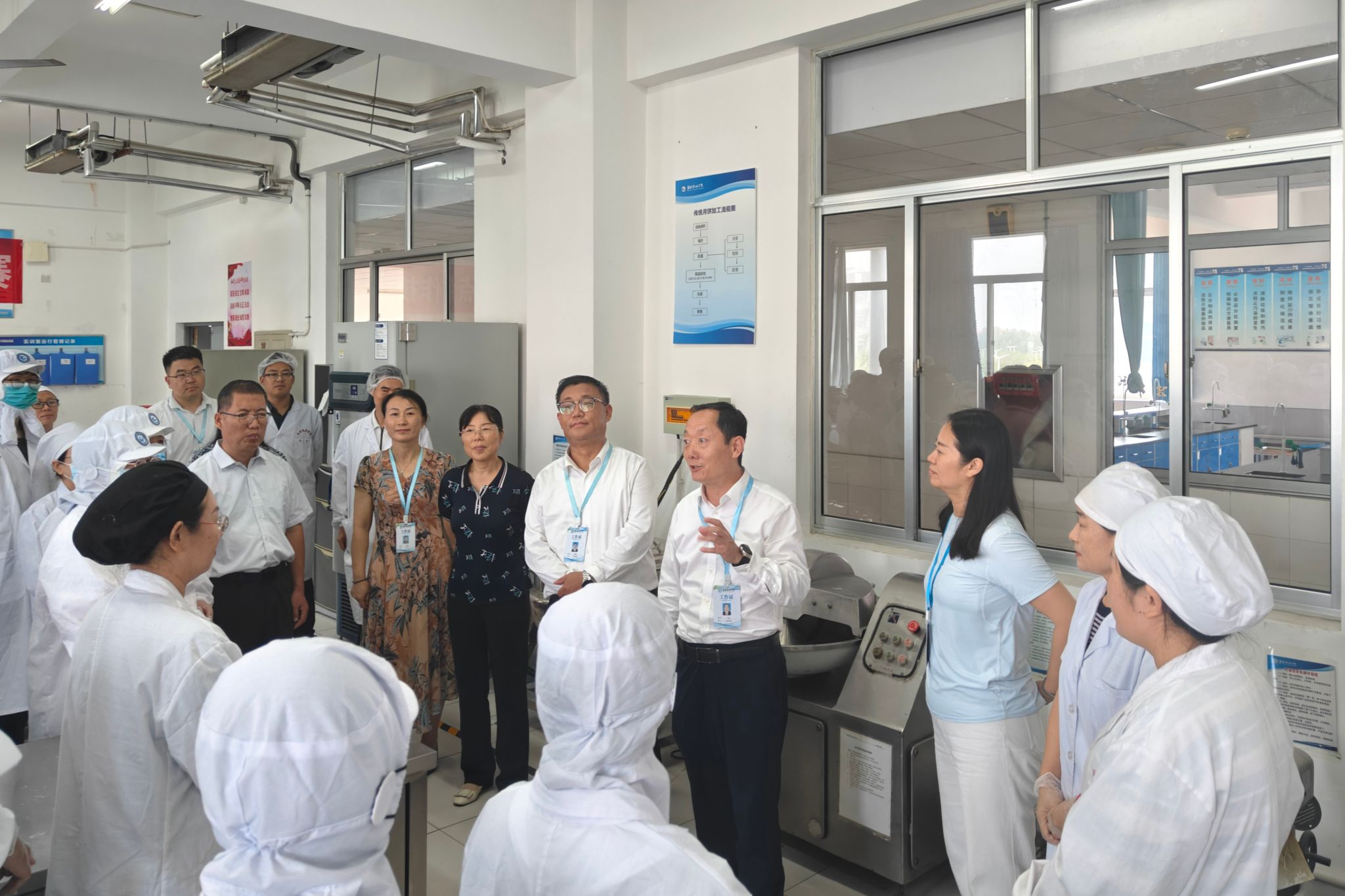9月9日上午,学院党委书记王浩,院长韩瑞东,副院长陈美霞,党委委员、办公室(统战部)主任(部长)刘志艳一行到食品药品学院调研指导月饼生产实训,食品药品学院党政负责同志、分管教学负责同志及食品加工专业教师一同参加活动。