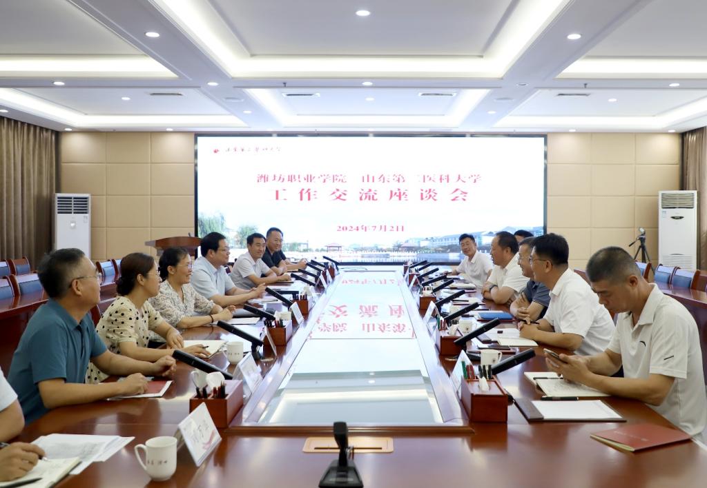 山东第二医科大学、山东科技职业学院的领导分别介绍了两所高校的办学历史、基本情况、近年来发展建设取得的办学成绩。两所高校的资产、基建、财务等部门的负责同志分别介绍了各自业务方面的具体经验做法、取得的成绩。双方重点就不动产权证办理、资产管理、基建等方面进行了交流学习。