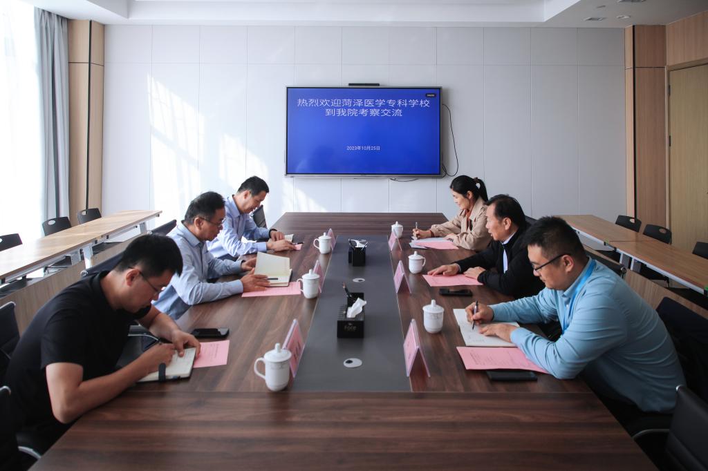 10月25日上午,菏泽医学专科学校党委委员、副校长齐云飞一行3人到bb贝博考察交流。学院党委委员、副院长贺志强会见客人,招生就业处和科技处负责同志陪同参加座谈交流。