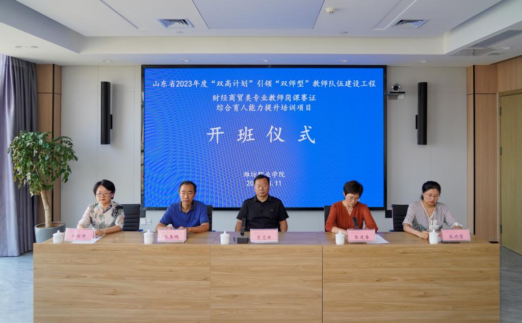 8月10日上午,山东省2023年度“双高计划”引领“双师型”教师队伍建设工程——财经商贸类专业教师岗课赛证综合育人能力提升培训项目,在bb贝博艾弗森官方网站行政楼会议室举行开班仪式。学院党委委员、副院长贺志强,经营管理学院主要负责人、教师工作部负责同志、项目组工作人员及来自全省多所中高职院校的30名教师参加开班仪式。