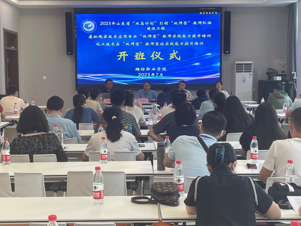 7月10日上午,山东省2023年度“双高计划”引领“双师型”教师队伍建设工程——化工技术类“双师型”教师岗位实践能力提升培训项目开班仪式在bb贝博艾弗森官方网站国际交流中心嵩山厅会议室隆重举行。学院领导李瑞昌,教师工作部部长、化学工程学院教学负责人、项目组工作人员及来自全省16所高职院校的30名骨干教师共同出席开班仪式。