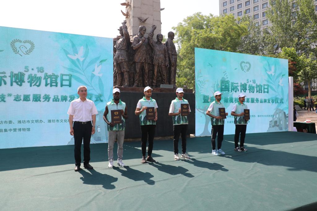 5月17日,乐道院潍县集中营博物馆国际博物馆日暨乐博“橄榄枝”志愿服务品牌发布仪式在乐道院潍县集中营博物馆乐道广场举行,bb贝博国际教育学院师生一起参加活动。