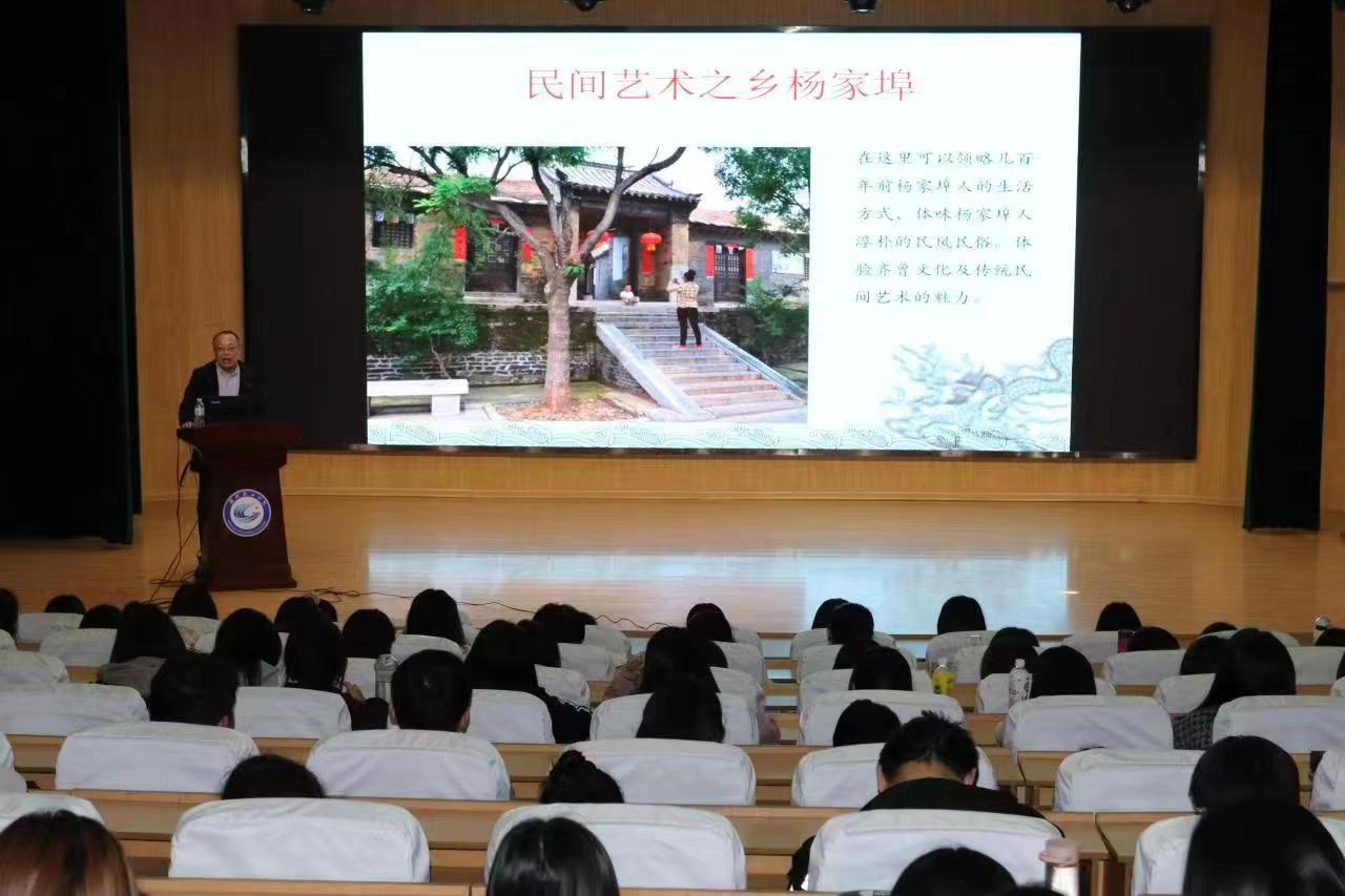 4月27日,第96场人文素养讲座在奎文校区16号楼报告厅举办。杨家埠木版年画代表性传承人杨志滨作了题为“杨家埠木版年画概述”的讲座,文化创意学院400余名师生聆听了讲座。
