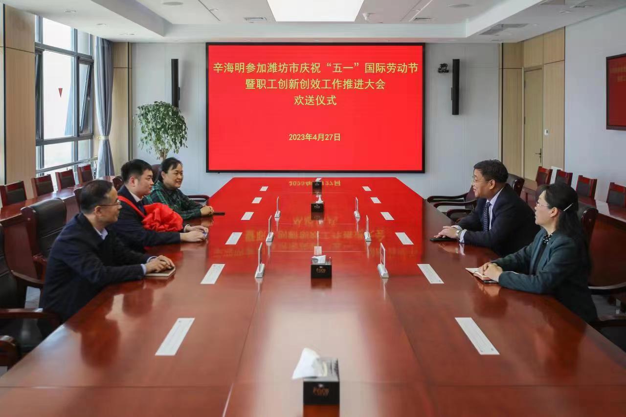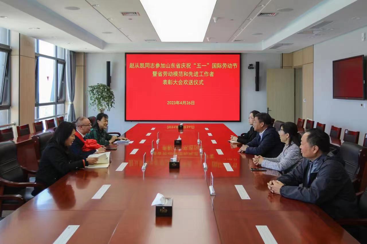 4月27日,学院在行政楼1118会议室举行学院教师参加山东省、潍坊市庆祝“五一”国际劳动节大会欢送仪式,庆祝并欢送2023年山东省先进工作者赵从凯、潍坊市五一劳动奖章辛海明参加省市庆祝“五一”国际劳动节大会表彰仪式。学院党委副书记韩瑞东,副院长陈美霞,党委委员、宣传部部长刘泓蔚,党委委员、组织人事处处长付一明出席活动,工会、教务处、机电工程学院等部门负责人和获奖个人参加活动。