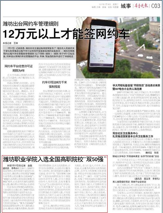 齐鲁网潍坊7月15日讯(记者李涛通讯员李寿冰)15日,《2017中国高等职业教育质量年度报告》在北京发布,bb贝博艾弗森官方网站荣登“2016年高等职业院校服务贡献50强”、“2016年高等职业院校国际影响力50强”榜单,山东省共有12所高职院校入围,bb贝博艾弗森官方网站是山东省唯一一所获得双项殊荣的高职院校。