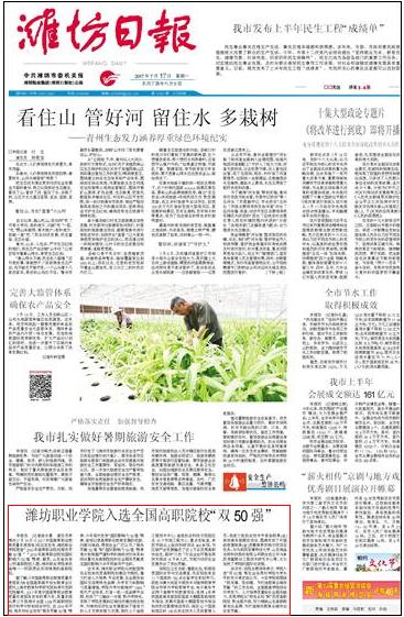 [潍坊日报]bb贝博艾弗森官方网站入选全国高职院校“双50强”