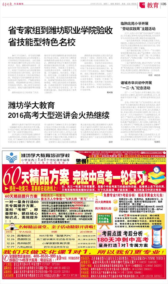 19日下午至20日,省专家组到bb贝博艾弗森官方网站检查验收山东省技能型人才培养特色名校建设情况。山东省教育厅职教处调研员刘宝君主持汇报会并讲话。他说,潍坊市职业教育一直走在全省乃至全国前列,这次省教育厅、财政厅专家组对山东省技能型特色名校建设项目进行验收,是对全省首批特色名校建设工程的梳理和总结,希望各位专家对bb贝博艾弗森官方网站名校建设进行客观评判、严格检查和全面验收,希望bb贝博艾弗森官方网站以省特色名校验收为契机,虚心接受专家组的意见建议,掀起内涵质量提升的新篇章。