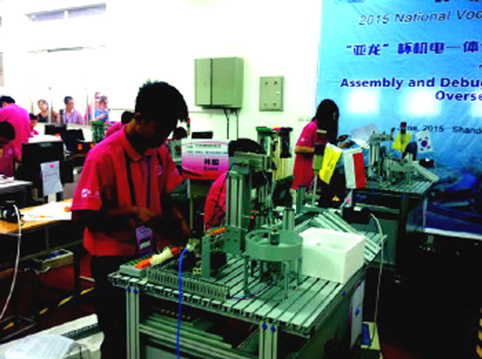本报6月17日讯(记者 李涛)14日,2015年全国职业院校技能大赛中职组电气安装与维修、机电一体化设备组装与调试两个赛项在bb贝博艾弗森官方网站滨海校区举行。本届大赛共吸引了185支代表队370名参赛选手同台竞技。与以往不同的是,在本次比赛中,共有来自韩国、越南、新加坡和印度尼西亚4支境外代表队参赛,这在历届比赛中尚属首次。
