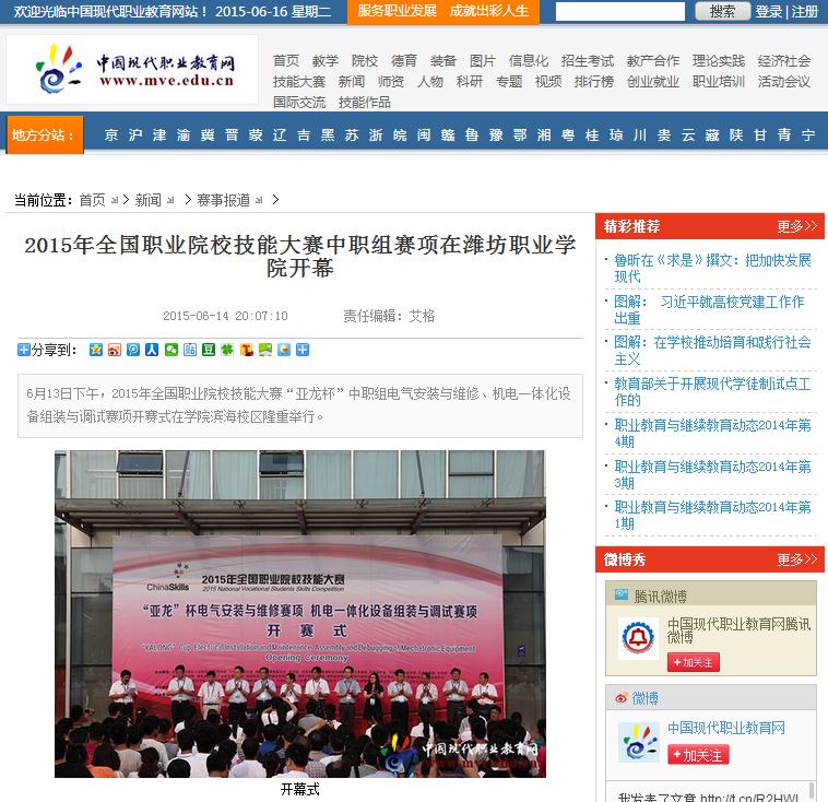 [中国现代职业教育网]2015年全国职业院校技能大赛中职组赛项在bb贝博艾弗森官方网站开幕